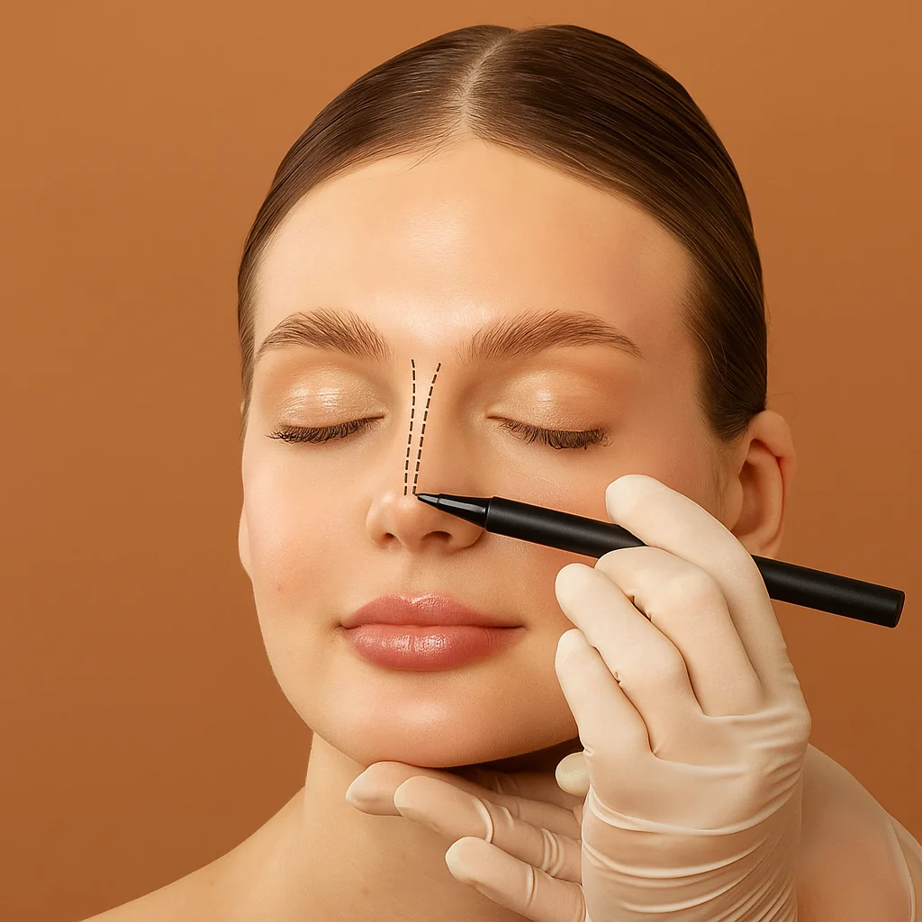 Corrección sutil de dorso, punta y proyección con ácido hialurónico. Procedimiento medido, reversible y de efecto inmediato.